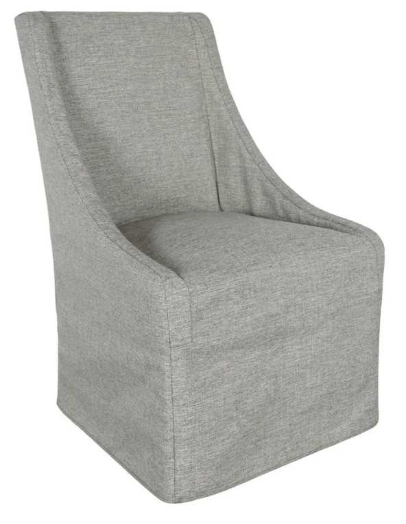 This classic dining chair elegantly marries form and function with its sloping arms, adding a graceful curve that comfortably cradles the body. Equipped with castors for effortless mobility around your dining table, its neutral gray upholstery effortlessly complements any color palette, enriching your dining experience.Read More