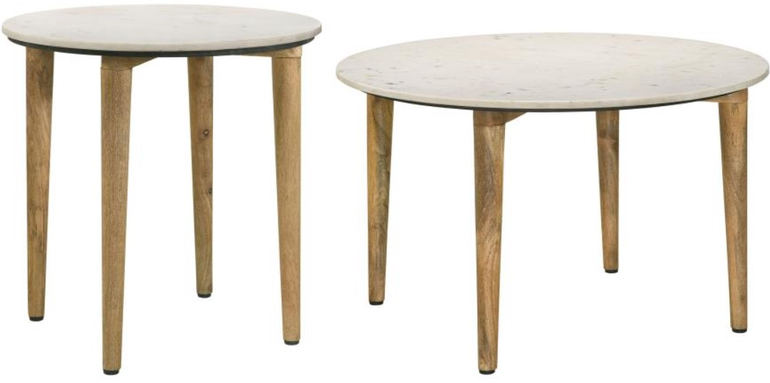 The Coaster® Aldis 2-Piece White Occasional Table with Natural Base Set features a striking contrast of white tabletops and natural wood bases. This set brings a fresh, airy look to any room while offering durability and style, making it a perfect addition to contemporary or minimalist home decor.Read More