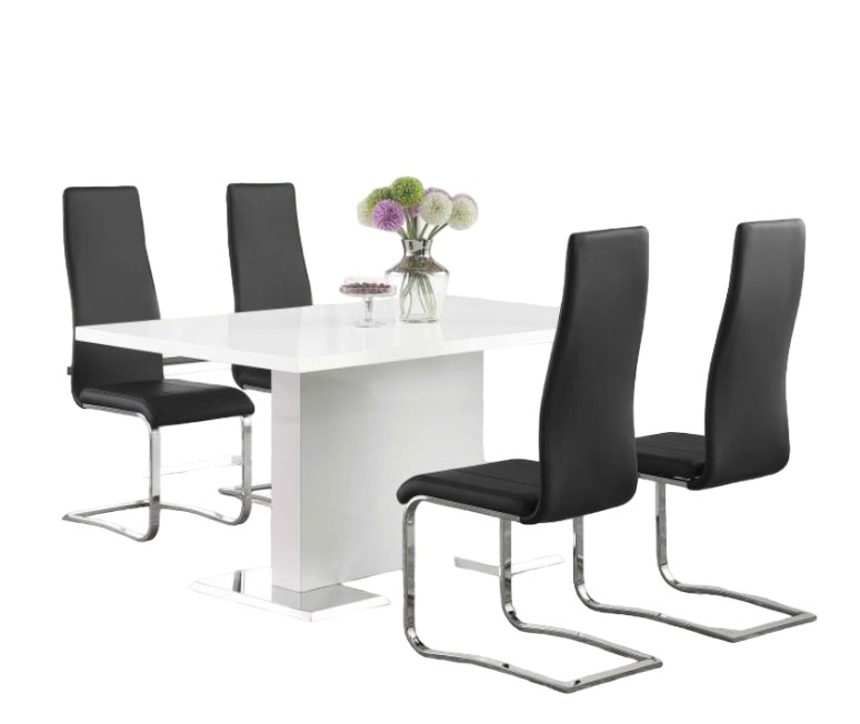 Transform your dining space with the sleek Anges 5-piece dining set, featuring a glossy white table and chrome base