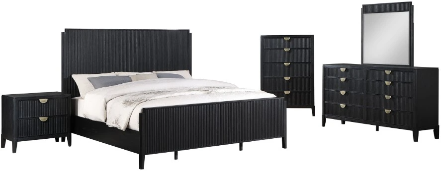 Fluted texturing and demi-lune drawer pulls perfectly accentuate the modern artistry featured in a five-piece bedroom set. Offering sophisticated presence and a wire brushed black finish, the set is a superb choice in a refined bedroom.Read More