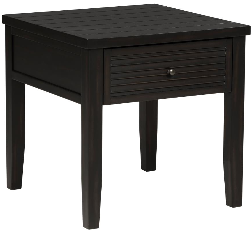 Square side table in a distressed java finish for a rustic yet sophisticated look