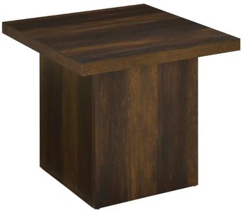 Sculptural and grounded, this end table blends rustic richness with bold architectural lines. A thick square top rests on a wide plinth-style base, forming a balanced and modern silhouette. The dark pine finish reveals natural wood grain, adding depth and warmth to its clean form.Read More
