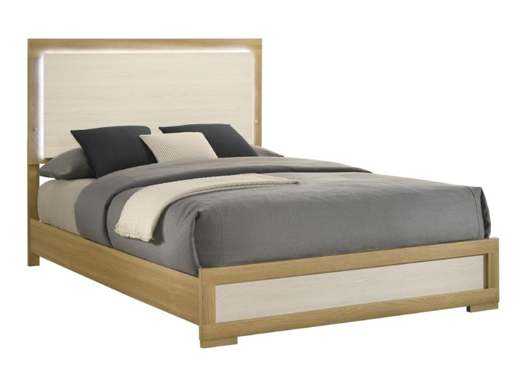 Transform your bedroom into a modern sanctuary with this stunning panel bed. Inspired by contemporary Italian design, the bed features a sophisticated blend of natural wood tones and crisp white panels crafted from durable, easy-care melamine. The headboard, adorned with integrated LED touch lighting.Read More