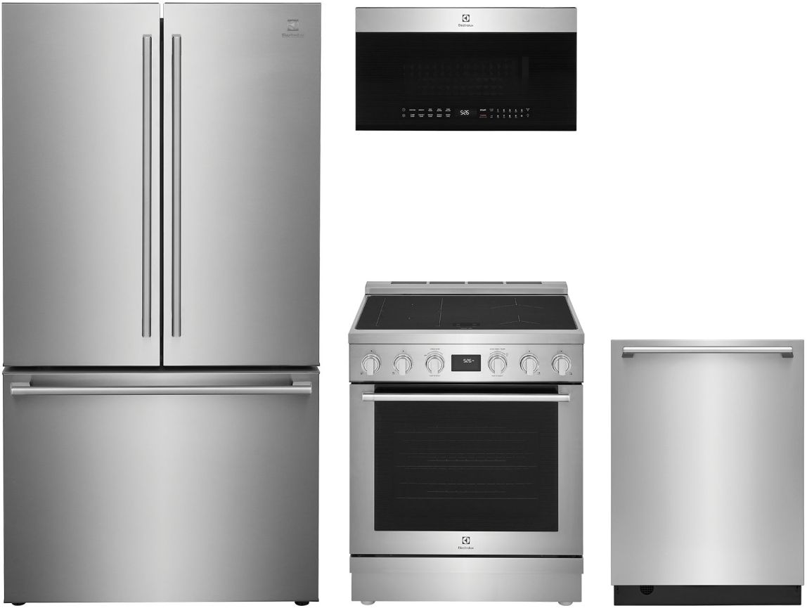 The Electrolux 4 Piece Stainless Steel Kitchen Package with a french door refrigerator, induction range, built in dishwasher, and over the range convection microwave.Read More