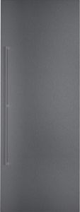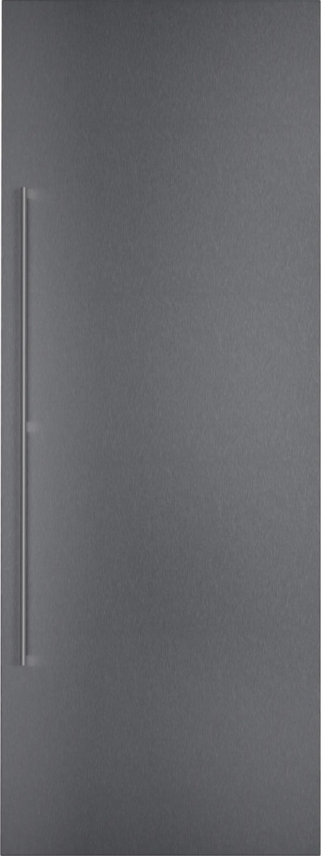 Dark brushed stainless steel door panel with handle.