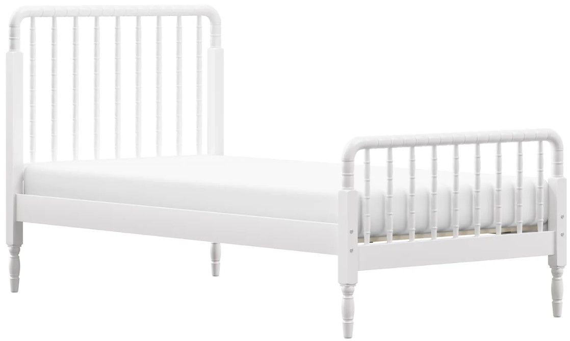 Turned legs are a nice touch that elevates the bed's timeless appeal. Classic and sweet, this bed adapts to many bedroom decor styles. Slat system means no box spring required. Twin mattress required, not included. Assembly required.