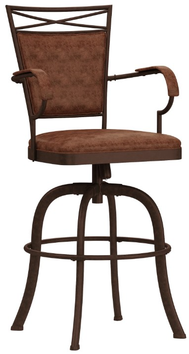 With its plush, padded seat, back, and arm rests, you and your guests will relax in comfort. The aged bronze metal finish adds the subtle luster ideal for your bar height dining table or kitchen island. Assembly required.