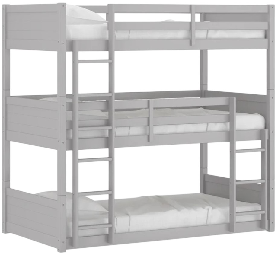 Stylish gray wood triple bunk bed with shiplap design
