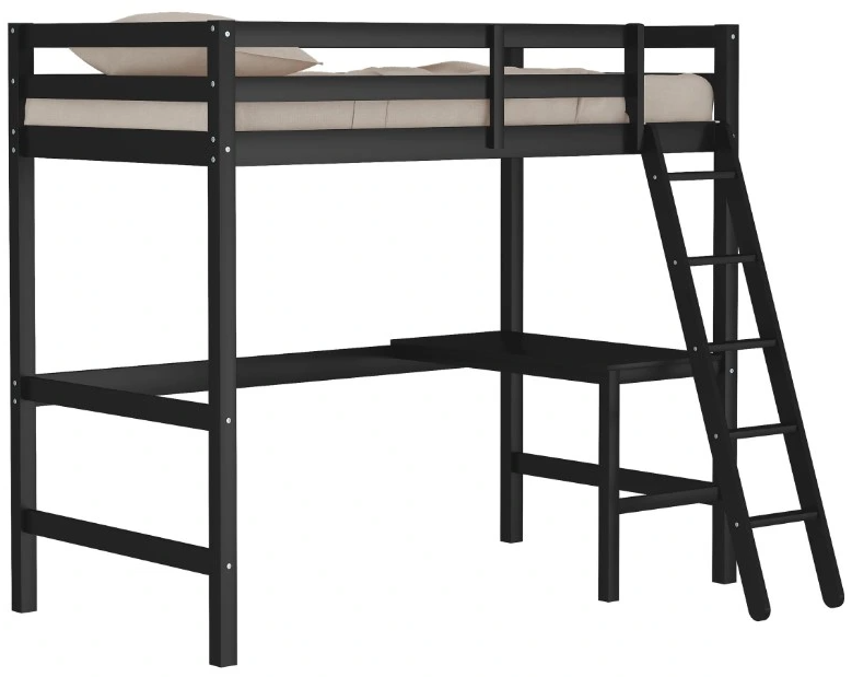 The Hillsdale kids and teen Caspian twin loft bed is the perfect combination of simplicity and style. The simple slat style features a built-in desk under the twin bunk bed, the perfect space for your child to work on homework or special projects. Featuring a black finish, this wood loft is the perfect addition to your kids room. Requires a twin mattress; not included.Read More
