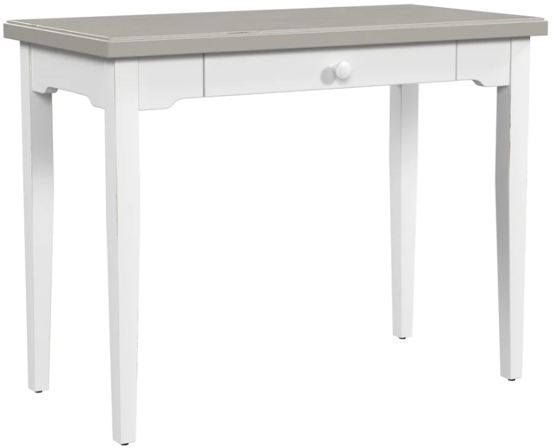 Its one drawer provides storage for the organization of paperwork, bills, and notes. Versatillity makes it not only the perfect piece in a designated office, but also perfect to tuck away in a kitchen or living room for additional workspace.