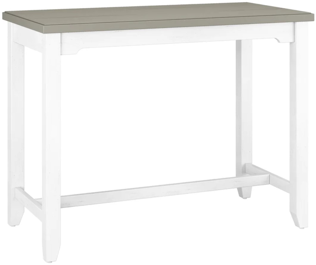 The distressed gray tabletop adds character and contrast against the soft white legs—making it a standout piece that’s both functional and stylish. Designed for versatility, this farmhouse dining table fits seamlessly behind a sofa, in a kitchen nook, or as a compact dining solution for small spaces and apartment living. Built from durable Rubberwood and MDF, it supports everyday use and can be easily maintained with non-abrasive cleaners. Whether you're furnishing a cozy condo or staging a model unit, this coastal-inspired bar table is a practical yet elegant choice. Assembly required.