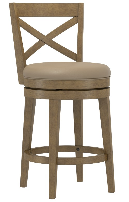 Rustic X-back design with swivel seat in taupe faux leather