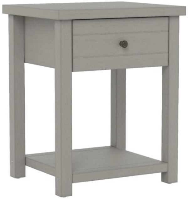 Wood accent table with drawer and shelf finished in gray