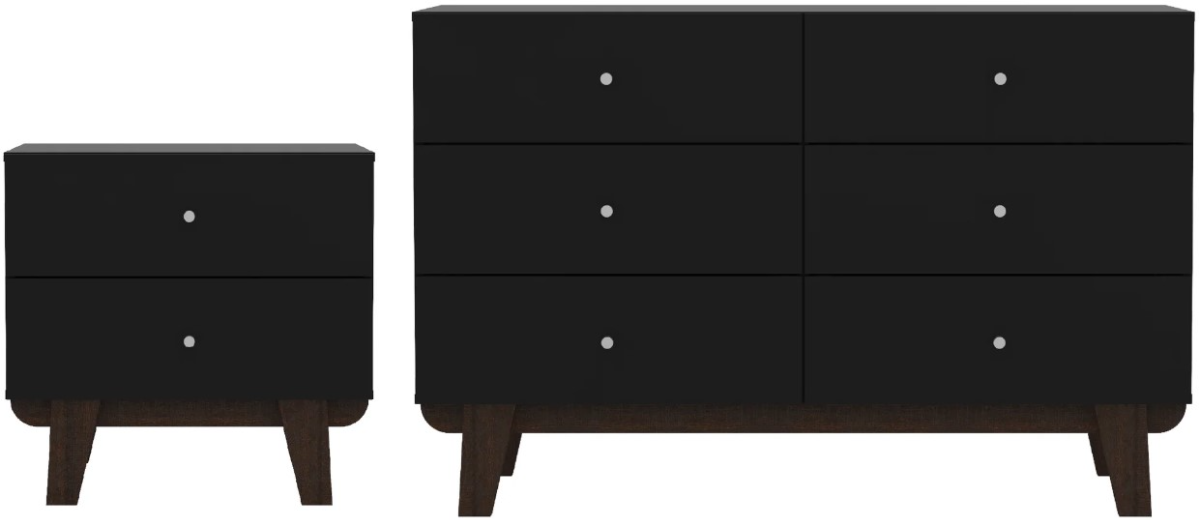 Midcentury modern wood 2-drawer nightstand, 6-drawer dresser set in matte black