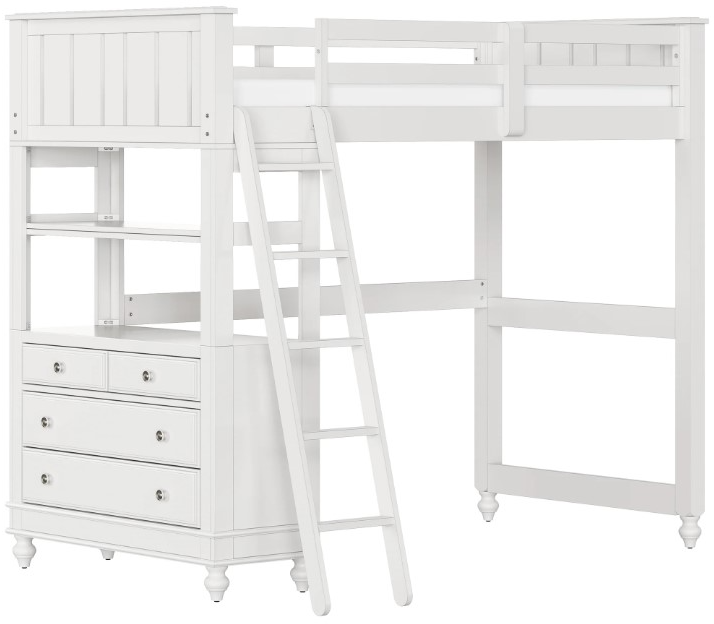 This full-size loft bed elevates the appeal of a lake retreat with modern hardware, clean lines, and casually elegant feet. Not only a seamless addition to any home decor, but functional, providing a six-drawer dresser to free up wall space.Read More