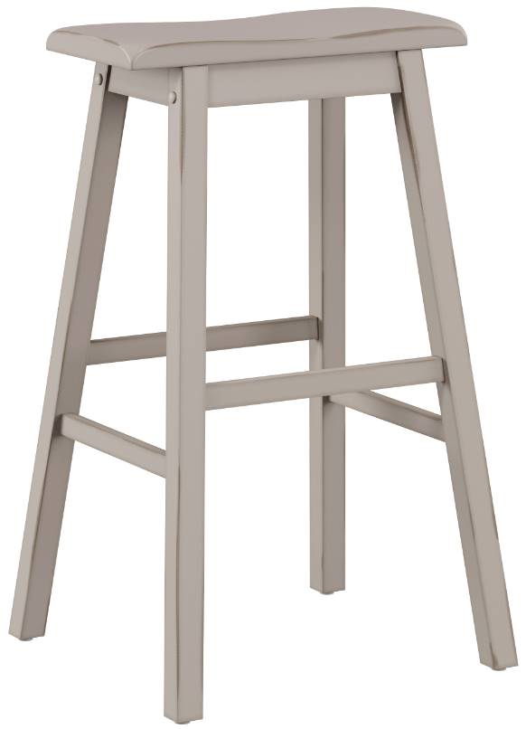 A whimsical addition to any home, this antiqued backless bar height stool is shabby chic at its best, perfect for a coastal bungalow or cozy cottage alike. With a classic backless silhouette, the bar height saddle seat stool is constructed of sturdy wood featuring a distressed gray finish.Read More