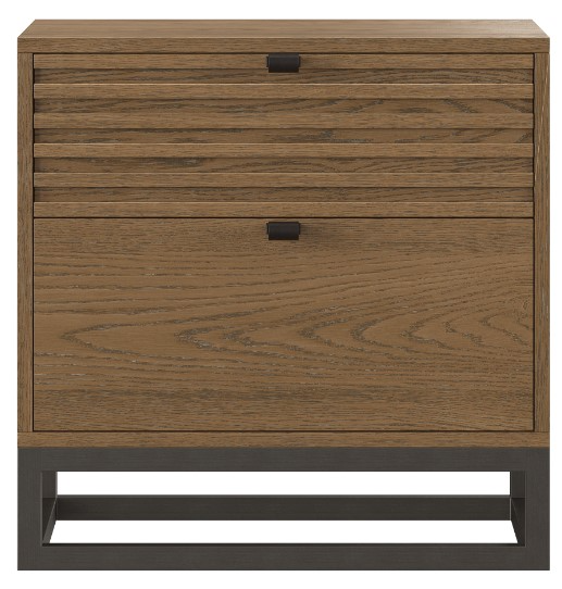 Two-drawer nightstand displays playful touches while exemplifying the best of industrial modern design