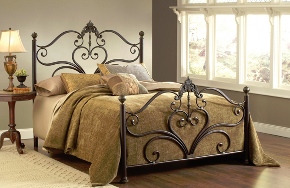 With a beautiful mix of delicate scrollwork, large ornate castings, and classic ball finials the Newton bed is a symphony of design. An antique brown highlight finish adds depth to feminine grandeur of this bed. While the large Victorian casting draws your eye to the gentle scrollwork of the headboard and footboard, the large ball finials atop the post add classic appeal. Constructed of heavy gauge tubular steel.Read More