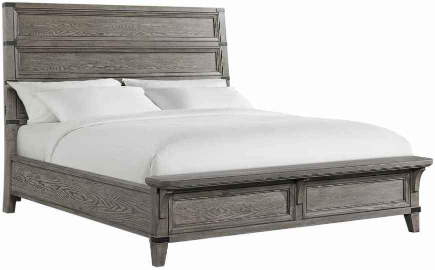 The Forge bedroom collection features oak veneer and select hardwood constructions in a wire-brushed steel gray finish. With detailed metal accents and hefty hardware, this trendy gray bedroom set will add diverse style to any bedroom.Read More