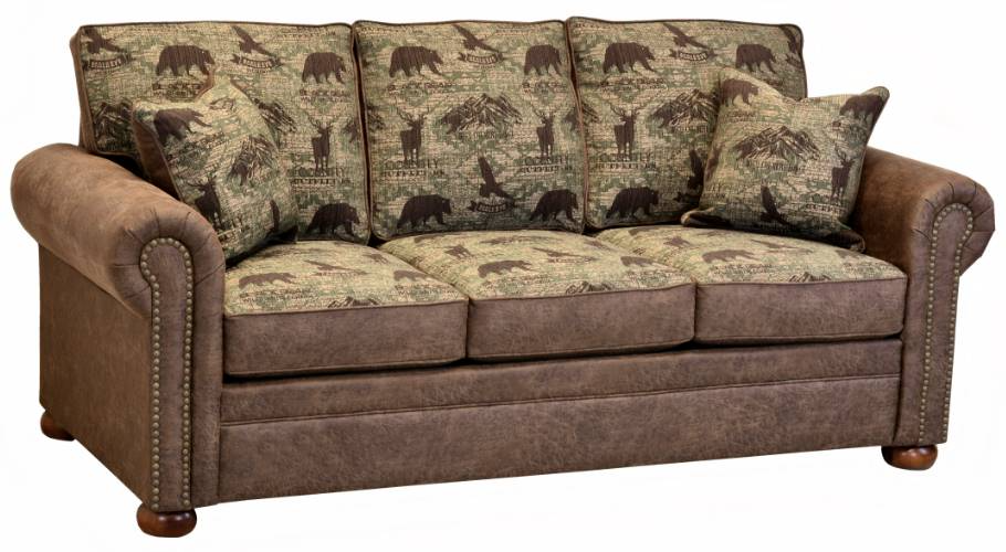 Featuring a classic 3 over 3 semi-attached back, gentle hand pleated roll arms, and resting on a walnut finish 5” bun foot, the Livingston offers tremendous versatility. While any Timber Ridge combination is available, it also offers the option of any solid body cloth and is available with brass, pewter, silver, shotgun, or natural nails.Read More