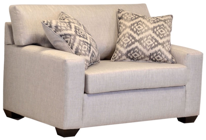 Featuring a generously filled back and modern track arm, the Riley collection brings style and appeal to the Trilogy Collection. It is available as a sofa and loveseat but also as a queen, full, and twin sleeper. Choose from our standard innerspring mattress or the customer's favorite, memory foam mattress.Read More