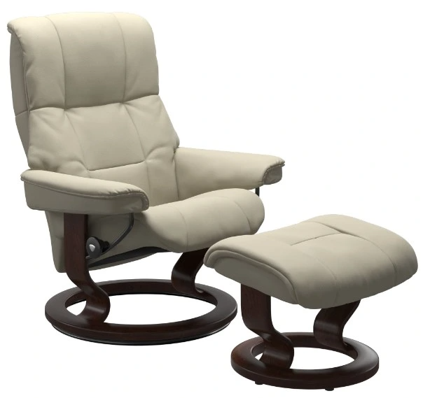 The Stressless® Mayfair manual recliner and ottoman with classic base combines supple cushioning, ergonomic support, and elegant design. Featuring lumbar support, Glide™ recline motion, and gentle rocking on a laminated beech classic base, it’s fully customizable in leather and wood finishes for a personalized and comfortable seating experience.Read More